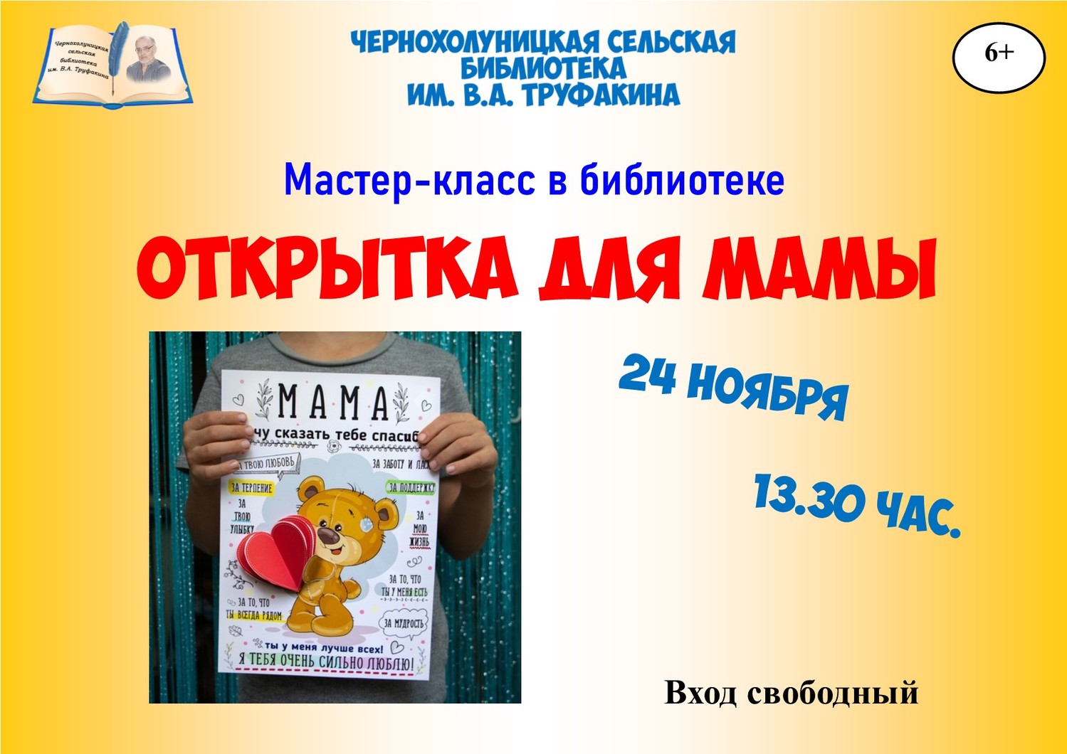Чернохолуницкая сельская библиотека им. В.А. Труфакина приглашает всех желающих на мастер-класс «Открытка для мамы».