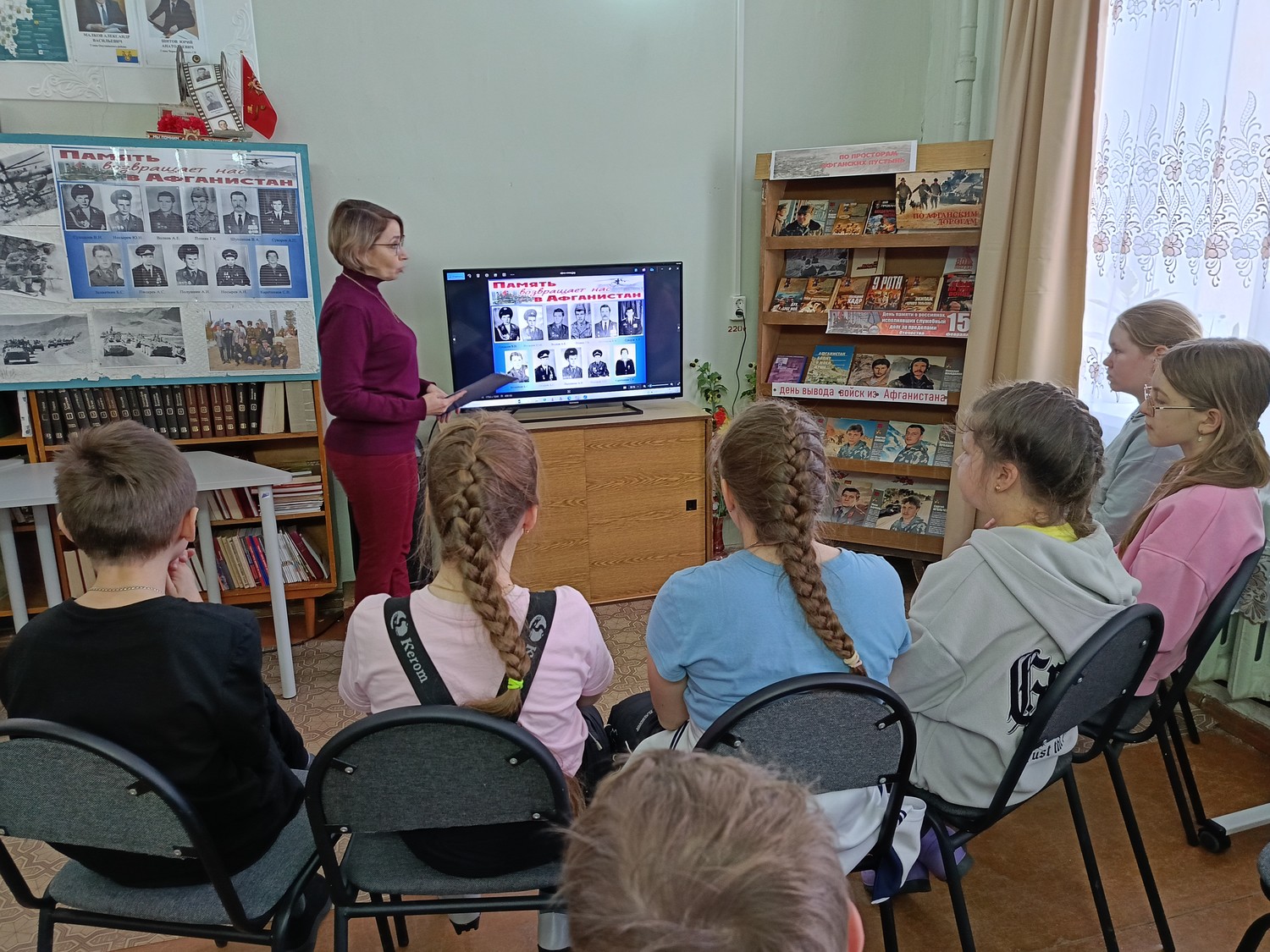 14 февраля в Чернохолуницкой сельской библиотеке им. В.А. Труфакина для учащихся 5-го класса был проведён урок мужества «По просторам Афганских пустынь».