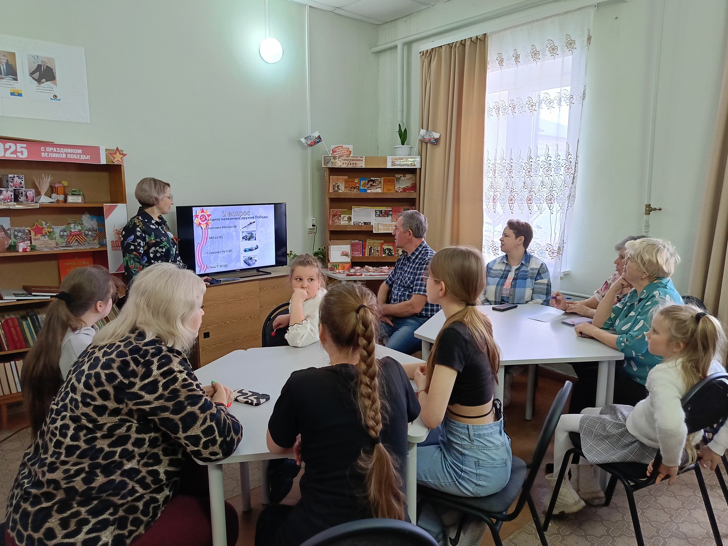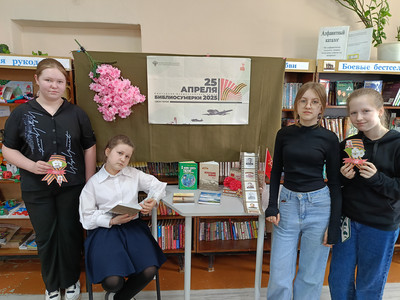 Программа была насыщенной и разнообразной. На абонементе для участников провели - викторину "Военные факты" и акцию "Георгиевская ленточка".