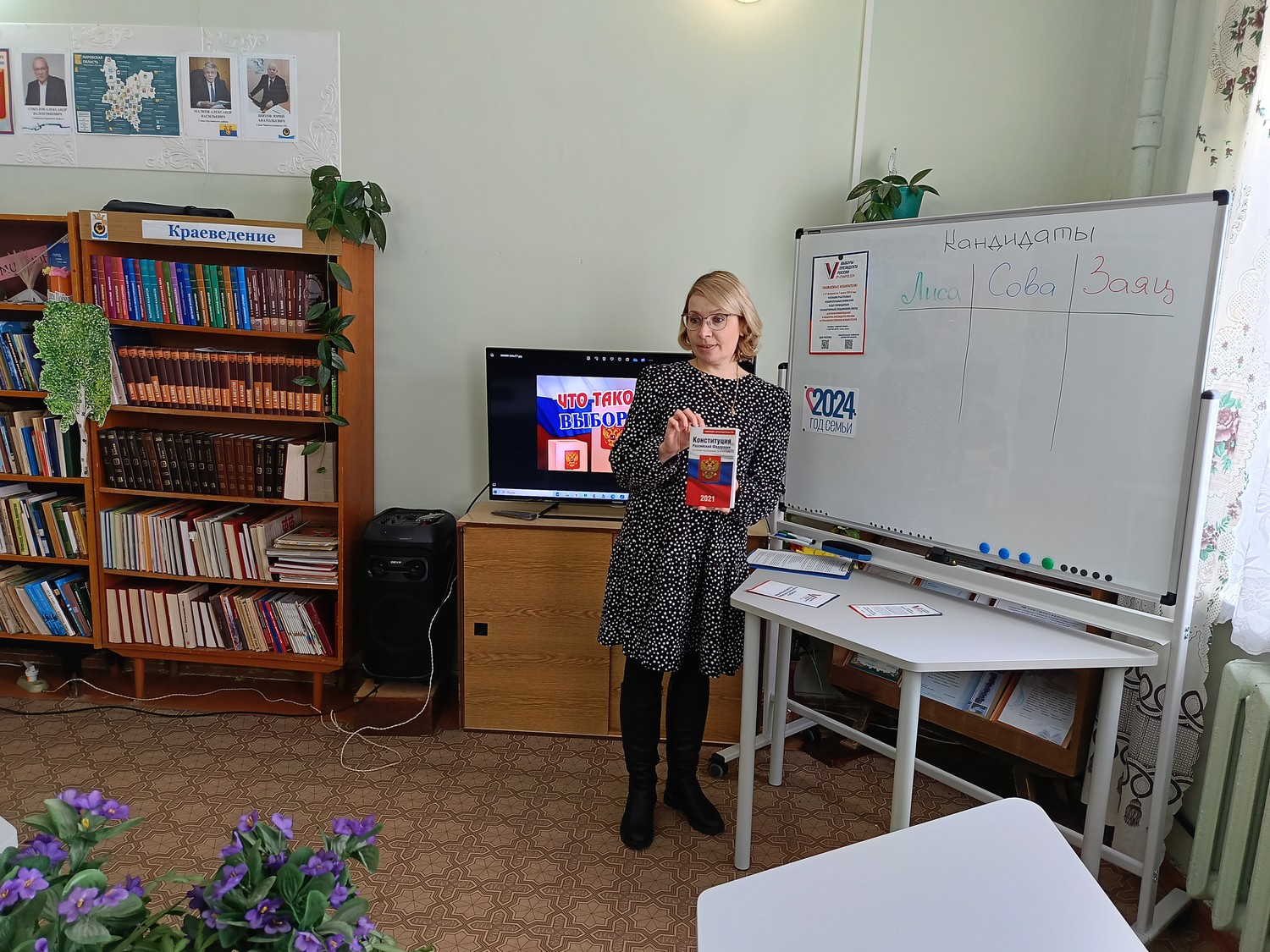 Знают взрослые и дети, Много разных прав на свете. Но хочу вам рассказать Я о праве избирать. Беседа «Что такое выборы» прошла в Чернохолуницкой сельской библиотеке им. В.А. Труфакина с подростками-читателями. Мы в своей жизни очень часто делаем выбор: что надеть, с кем дружить, что купить, что съесть и т.д. Будущие избиратели познакомились с основными понятиями и терминами выборов, для чего создаются избирательные комиссии, кого называют участниками избирательного процесса, с какого возраста возникает избирательное право, какие документы нужны для участия в выборах. С помощью сказки «Выборы в лесу» ребята приняли участие в выборе Главы лесной опушки, прослушав все предвыборные программы лесных героев. Библиотекарь рассказала, какие права гарантированы нам Российской Конституцией, подчеркнула, что участие в выборах - это проявление социальной ответственности, политической зрелости, участие в жизни общества. Все материалы по предстоящим выборам размещены на информационном стенде «Судьба родного края – наш выбор».