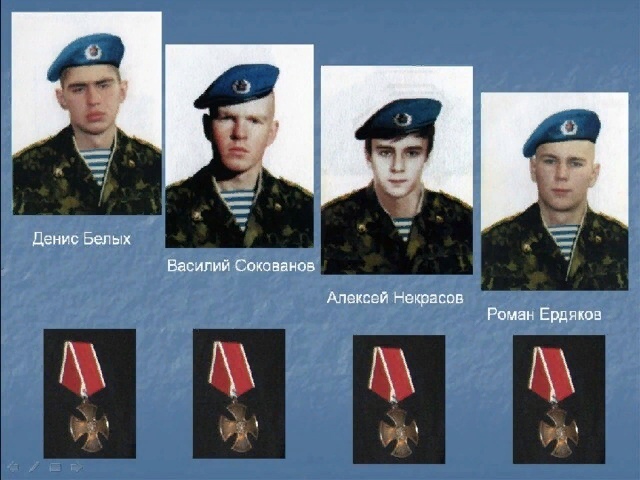 Двадцать пять лет назад произошел один из самых жестоких боев 21 века – бой у высоты 776. В ходе этого боя погибли 84 десантника 6-й роты 2-го батальона 104-го парашютно-десантного полка из состава знаменитой 76-й Псковской гвардейской воздушно-десантной дивизии. Из всей роты в живых остались только 6 бойцов, и один из них наш земляк Христолюбов Роман Анатольевич. Указом президента Российской Федерации 22 десантникам 6-й роты за проявленное мужество и героизм было присвоено звание Героя России (из них 21 — посмертно), 68 солдат и офицеров роты награждены орденами Мужества (63 из них — посмертно) Среди погибших в том страшном бою были наши земляки - уроженцы Кировской области: Гвардии рядовой Некрасов Алексей, Гвардии ефрейтор Сокованов Василий, Гвардии рядовой Белых Денис, Гвардии рядовой Ердяков Роман - все они награждены Орденом Мужества (посмертно). В их честь названы улицы городов Кировской области, в учебных заведениях открыты мемориальные доски. Ребята почтили память погибших героев-десантников минутой молчания. 1 марта - День памяти воинов-десантников 6-ой парашютно-десантной роты 104 гвардейского полка Псковской дивизии ВДВ, геройски погибших в Аргунском ущелье (с 29 февраля по 3 марта 2000 г.) при проведении контртеррористической операции на территории Чечни.