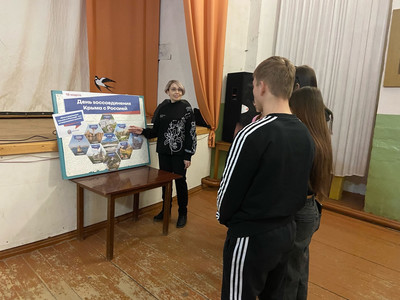 К 11-й годовщине присоединения полуострова Крым к Российской Федерации в ДК Чернохолуницкой сельской библиотекой им. В.А. Труфакина проведен информационный час "Крым и Россия едины". Библиотекарь рассказала об истории Крыма, о географическом положении и ландшафте полуострова, природе, климате, населении, национальной кухне, достопримечательностях Крыма и Севастополя, историю возникновения полуострова Крым. Узнали, что раньше полуостров носил название Таврика, а с 13 века начал называться Крымский улус. Участникам мероприятия рассказали о референдуме 2014 года, когда Крым получил статус республики и подписали договора о присоединении Крыма и города Севастополя к территории России. Интересная информация о богатейшей природе и самых известных достопримечательностях Крыма показана в презентации и в виде гексов на стенде. Особый интерес у подростков вызвал рассказ о сегодняшнем положении Крыма, о том, что лично видел библиотекарь и где стоит побывать летом в отпуске.