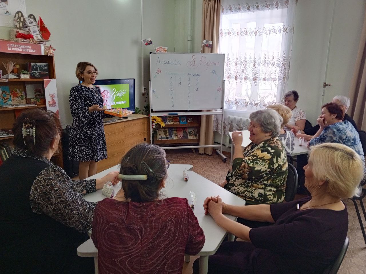 Накануне женского праздника в Чернохолуницкой сельской библиотеке им. В.А. Труфакина собрались прекрасные участницы клуба "Общение" для интеллектуальной игры "Логика 8 Марта". В игре проверили логику две команды "Подснежник" и "Ландыш". Тема игры "Женский день". Вопросы задавались поочередно каждой команде. На экране появлялся вопрос и для отгадки давались 4 картинки-подсказки "Что их объединяет". Команды активно обсуждали задание, старались не подсказывать друг другу, но без этого не обошлось Победила - Дружба. Все в награду получили памятный сладкий приз и тюльпанчик-открытку с пожеланиями. Завершилась встреча приятным разговором за чашкой чая с праздничным тортом.