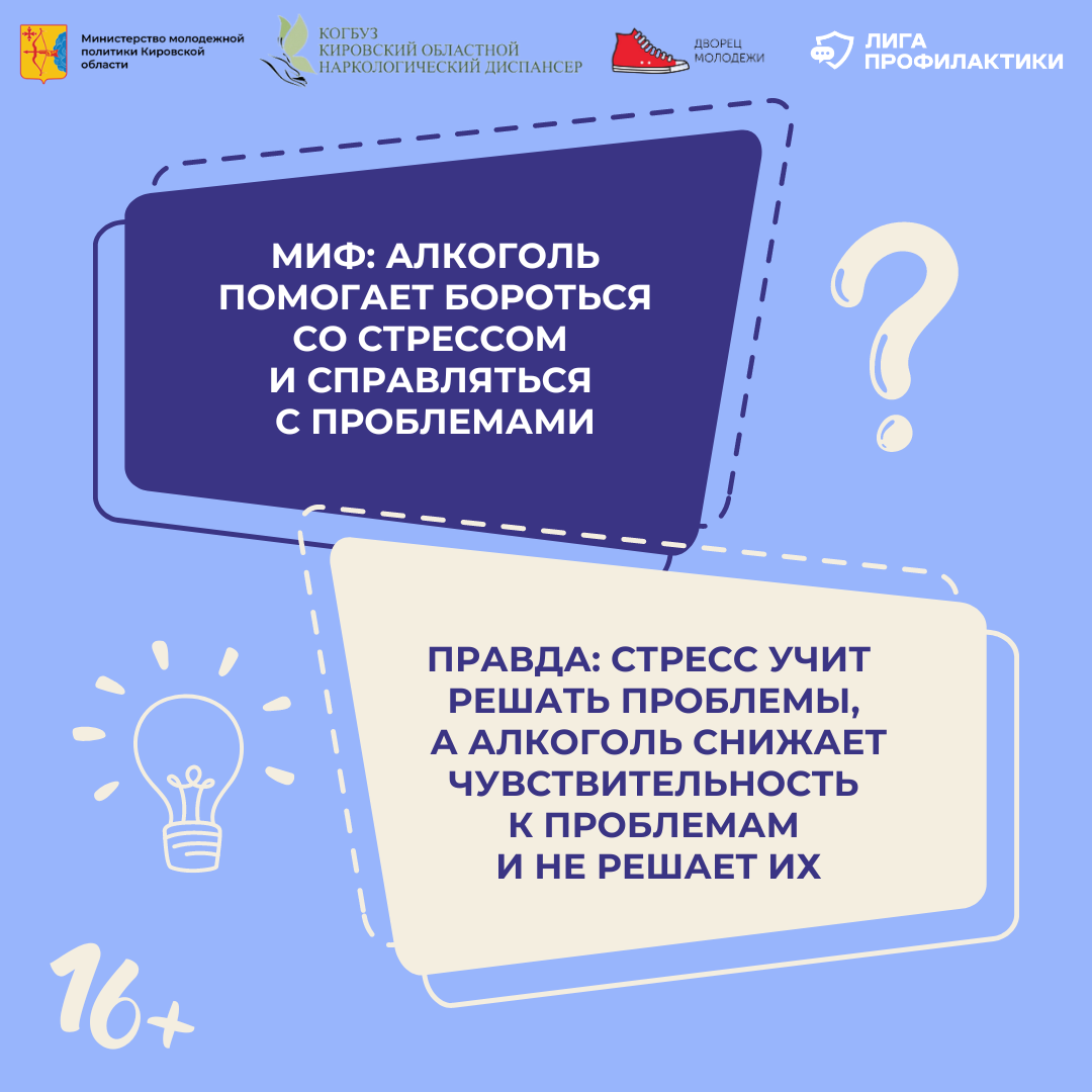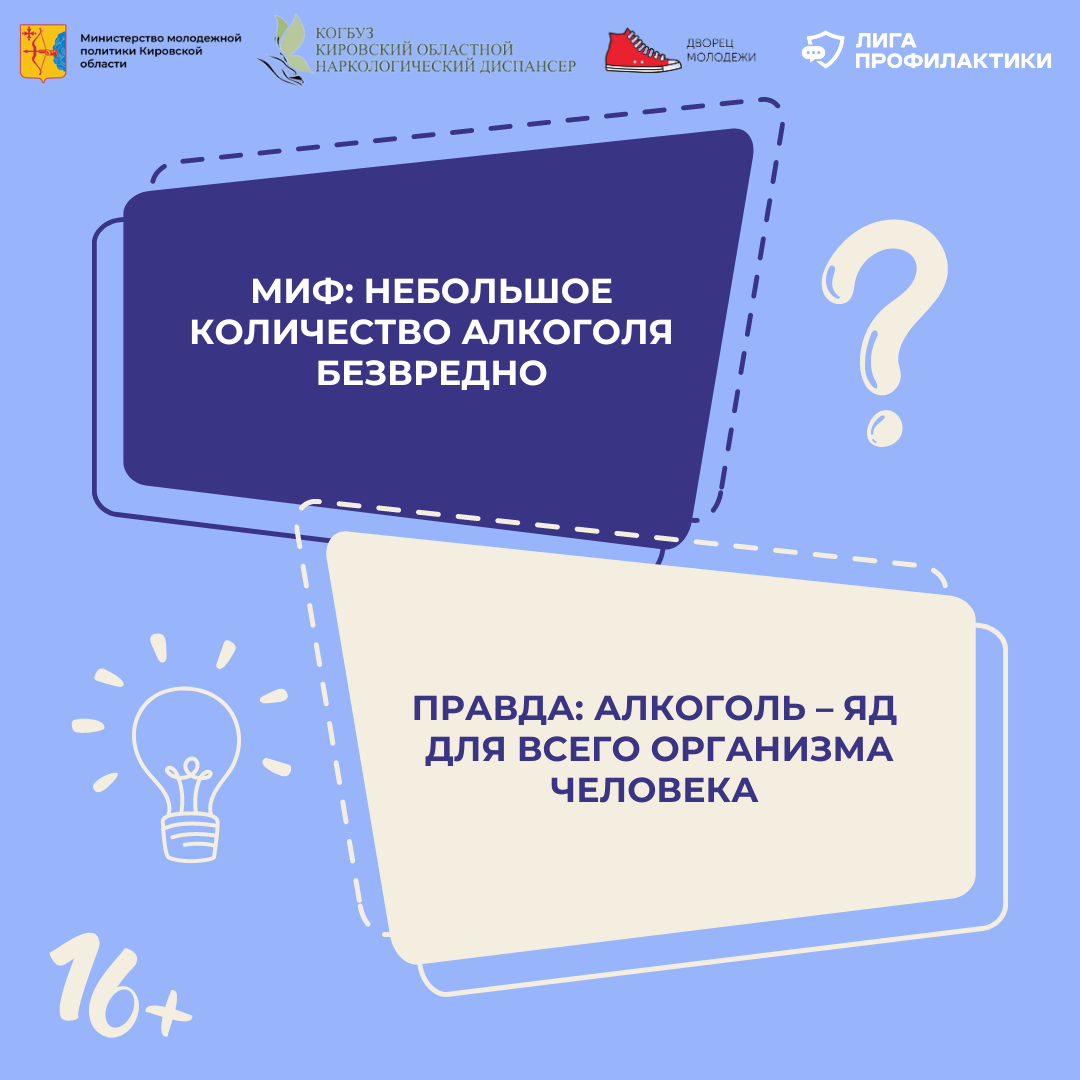 Всемирный день трезвости — это возможность напомнить обществу о том, какие ценности для нас являются важными, о том, каким ценным является здоровье. Разумный и осознанный выбор трезвого образа жизни – одна из основных задач, стоящих перед современным обществом. Центр профилактики и социальной безопасности молодежи при поддержке Министерства молодежной политики Кировской области и Кировского областного наркологического диспансера составил набор карточек, которые развенчивают мифы об алкоголе.